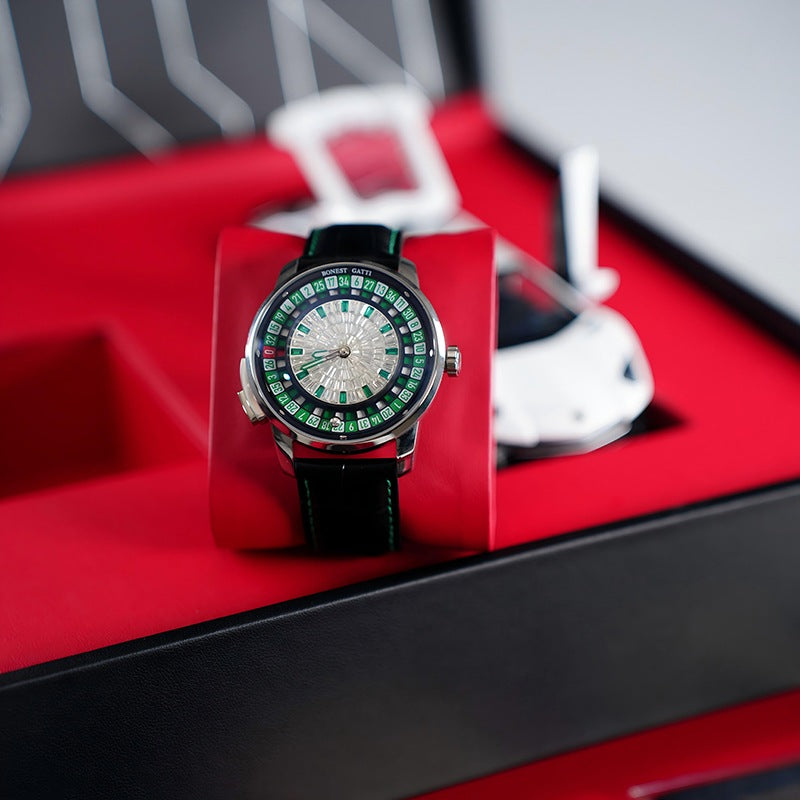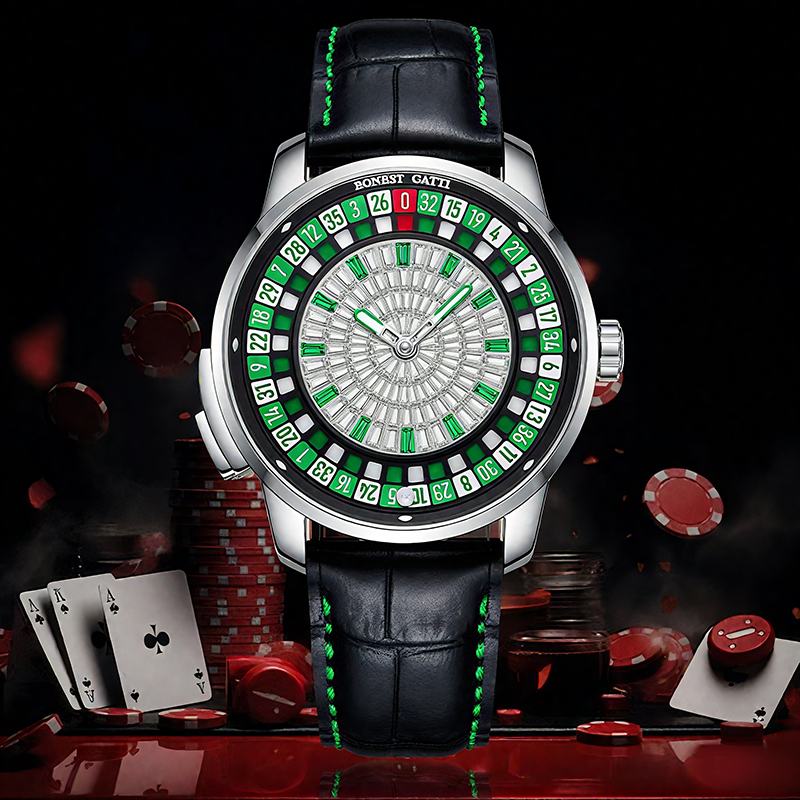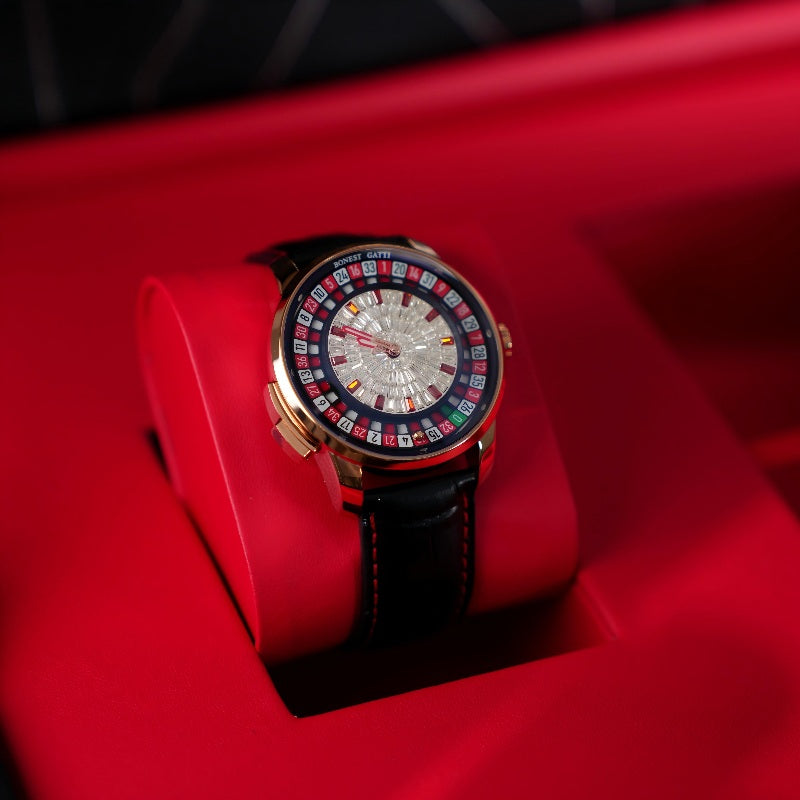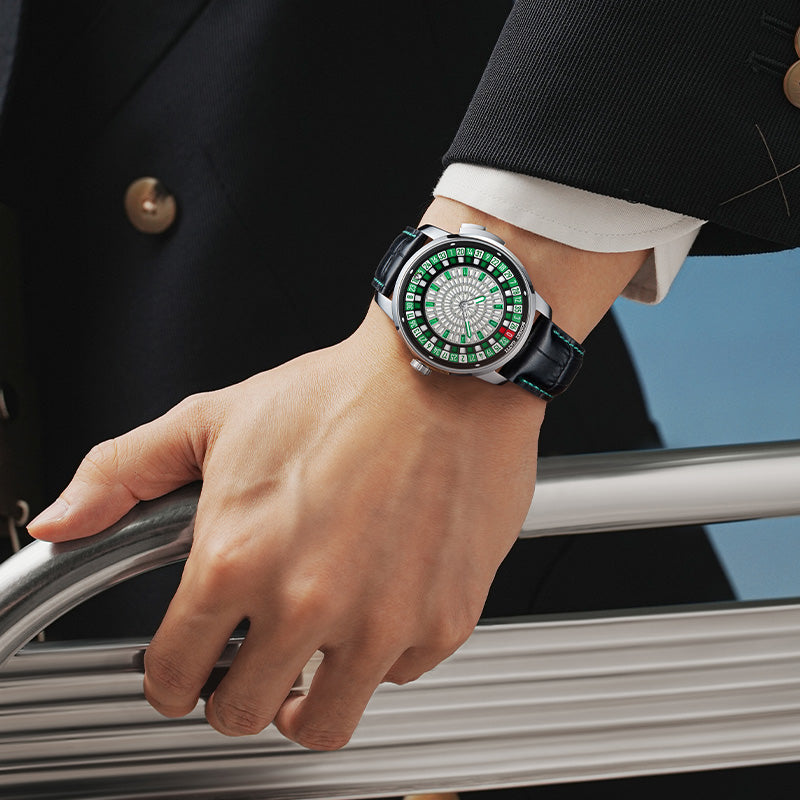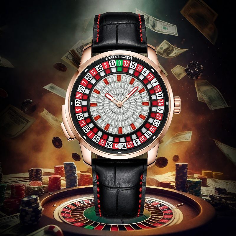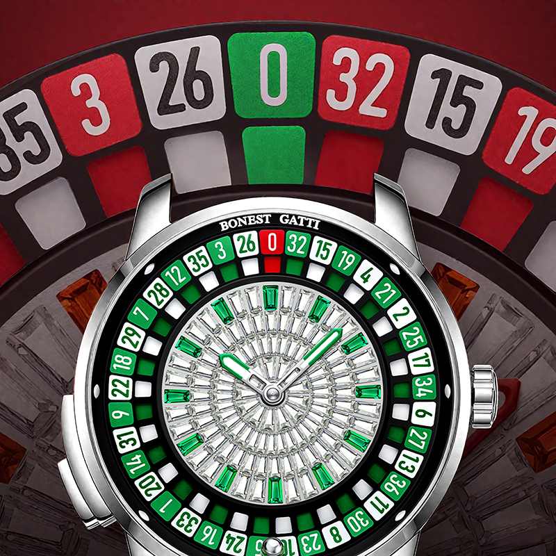 Now, this fascinating activity will continue on your wrist. The outer ring of the dial is decorated with a roulette wheel that can rotate with changes in gravity.
