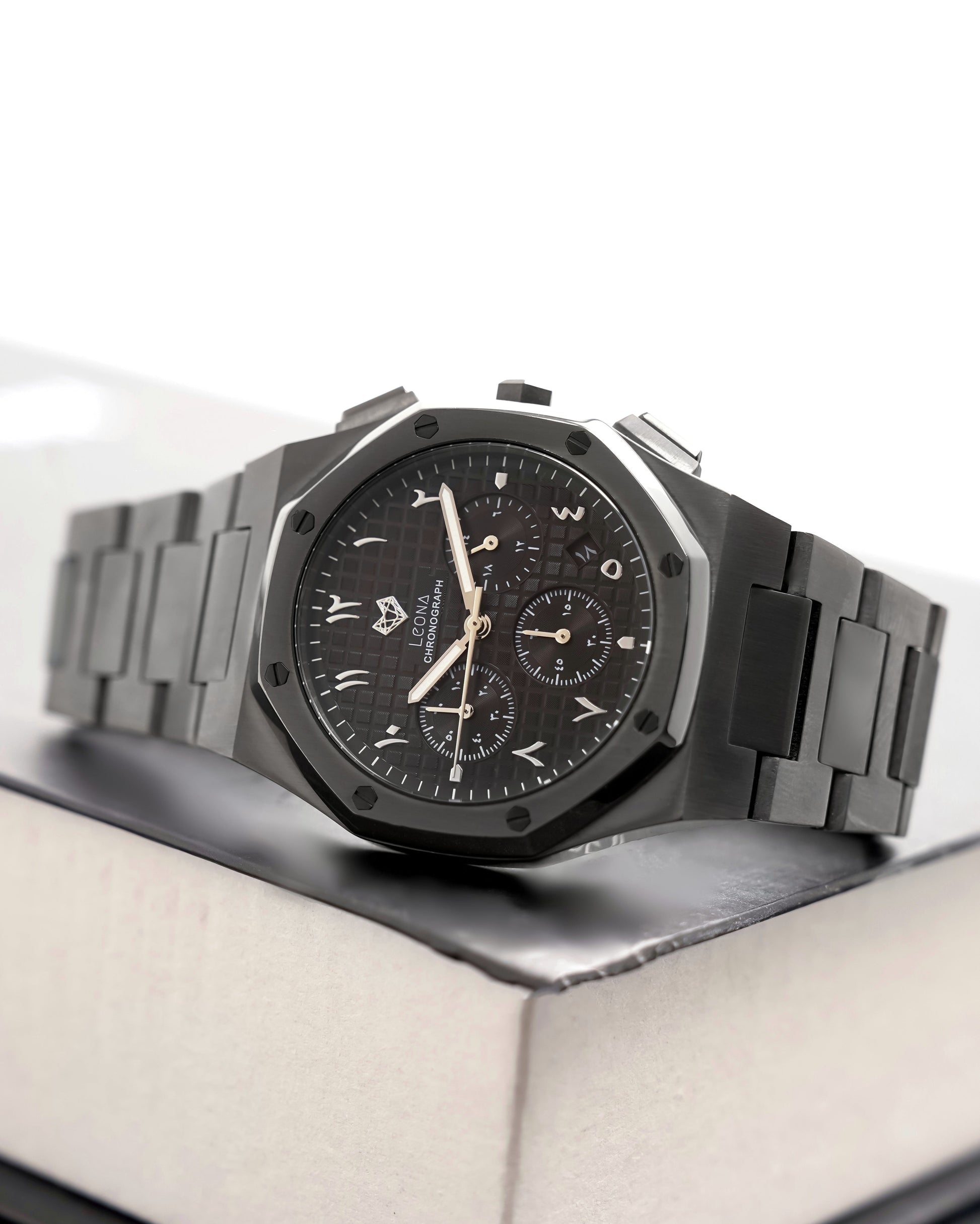 A masterpiece from Leona’s Exclusive Collection, the Royal Chronograph Black Edition blends stealth, high craftsmanship and luxury in one commanding timepiece.
