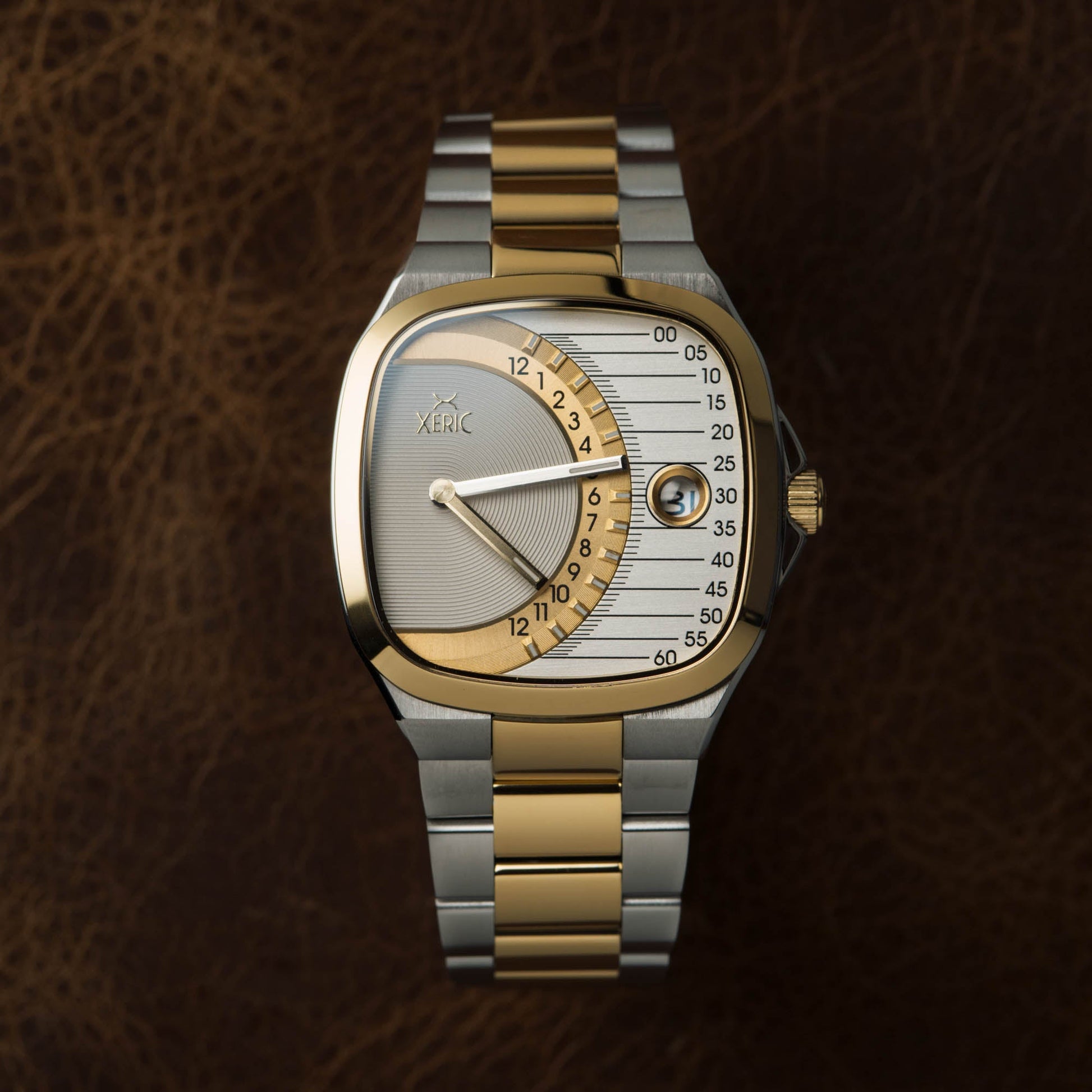 The Timeline Retrograde is powered by the high end Miyota 9015 movement with a custom built retrograde complication. Every 60 minutes the flyback mechanism launches the minute hand back to zero in an instant, in the most dramatic and satisfying way, unlike any other traditional watch. And every 12-hour transition from AM to PM or vice versa, the hour hand does the same. The retrograde complication enables the dial to have a linear time display, with intuitive, easy to read time telling, but completely unique in design.